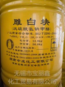 無錫市寶麗鑫化工貿易有限公司位于美麗的太湖之濱--江蘇無錫。公司具有很好的信譽和專業的銷售人員。 公司主營食品級保險粉、漂毛劑(鋅粉法和甲酸鈉法)、雕白塊系列(雕白粉,結晶雕白粉)、雕白鋅及造紙用無水亞硫酸鈉、水泥混凝土行業用等各類化工產品,具有強大的供貨能力和相當合理的價格。 公司本著用戶至上,誠信經營,互惠互利的原則,竭誠為新老用戶服務。歡迎來人來電洽談合作!